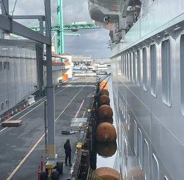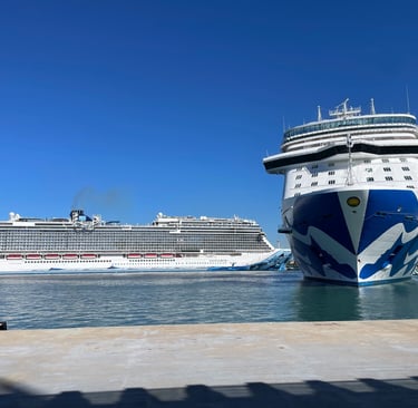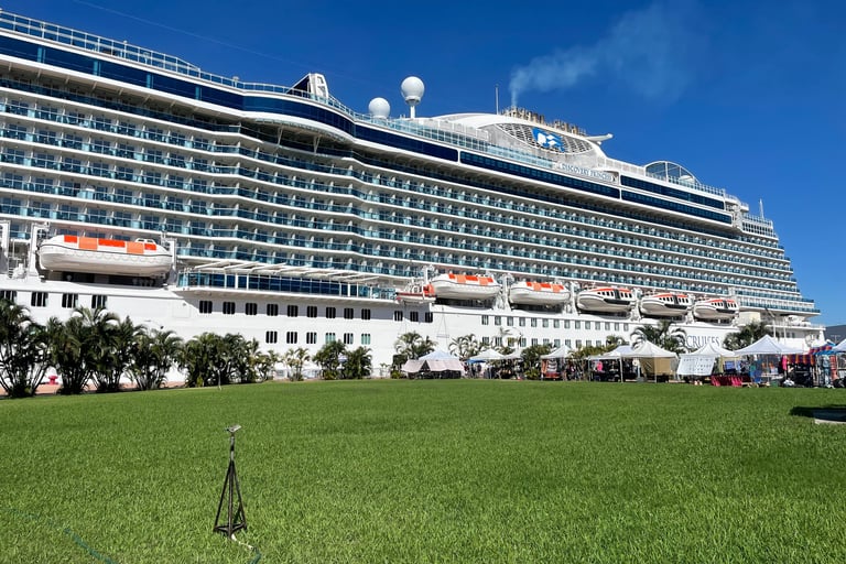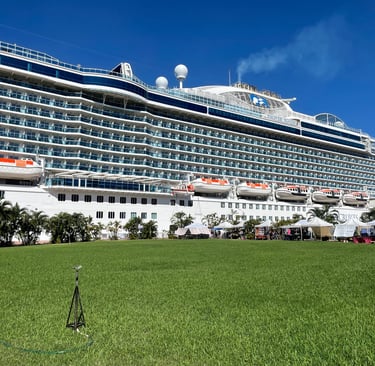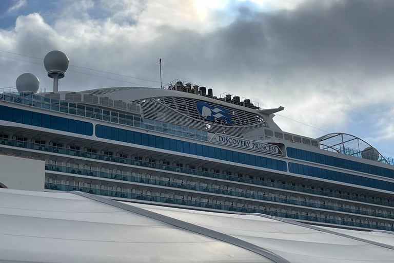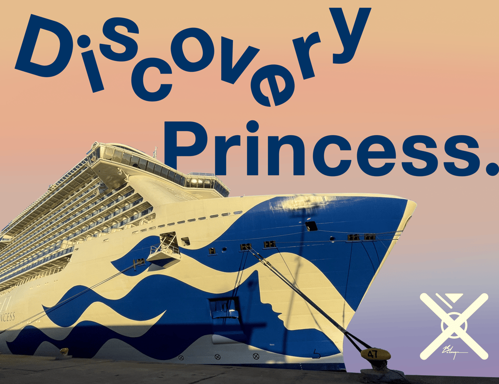 The ship I embarked, as you might know, was the Discovery Princess. Christened in 2022 by Randy Fenoli, Alex Guarnashcelli, Adam Savage, and Page Turner. I am highly opinionated by this bunch, good, bad, and neutral. It was all done in Hamilton, Bermuda, and she flew the British North American Flag front-and-centre, with the American and Mexican Flag along Port and Starboard.
