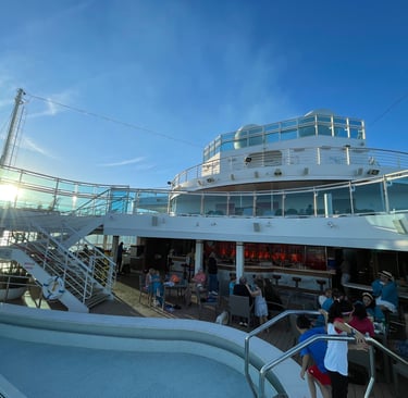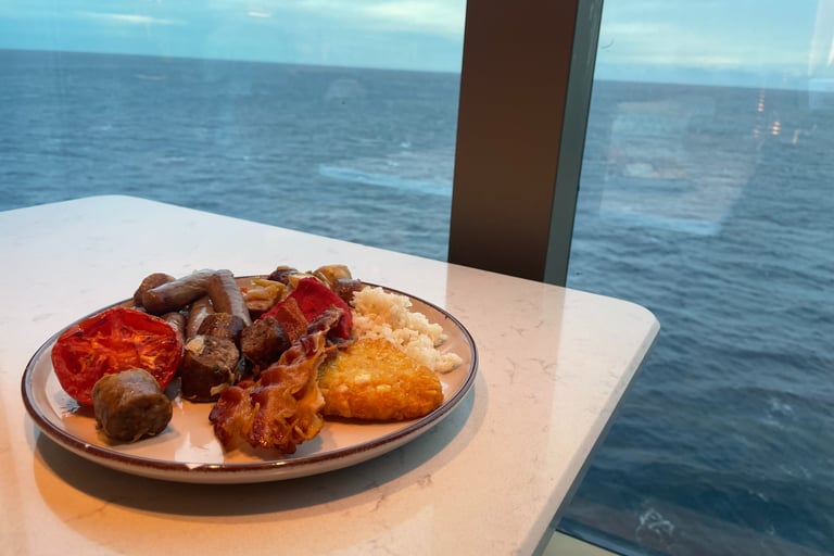 It made me feel good to have skipped the game. The spa had impressed me, and it had been 8 years since I’d entered a steam room, and oh did I miss it! The enclave included countless hot loungers, a gargantuan big jacuzzi with different jet types, 4 speciality showers with different modes, full of massage rooms (not included on the pass), A hammam (my personal favourite; a Turkish steam room with minty aromatherapy and loungers), a regular steam room, and a dry stone sauna. All were very relaxing and made me feel better, but not tip-top. I still felt chills and weakness. I finally ate after a 22-hour fast, and that Tomato Bisque hit the spot. The waves were monstrous and did not aid in my case for remediating my sickness. It had made me the most relaxed I’ve ever been on the cruise, but it’s too bad I felt this way. Perhaps, guests were unvigilant with washing hands and handling the buffet, or likewise to myself; very unfortunate.
