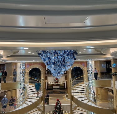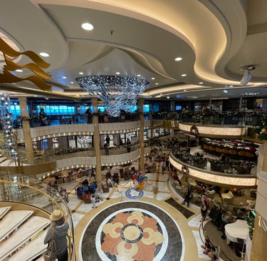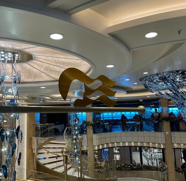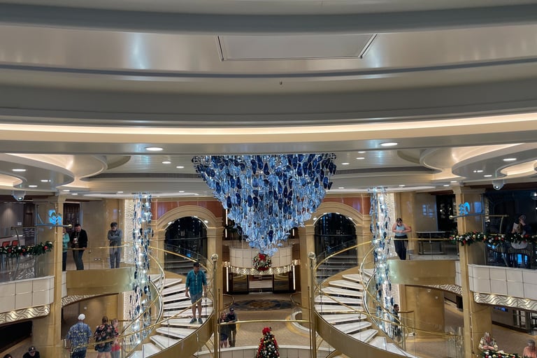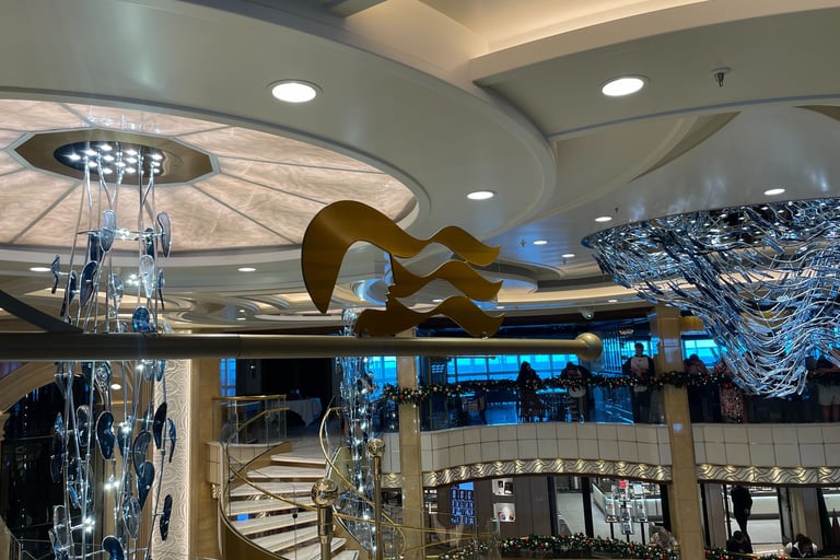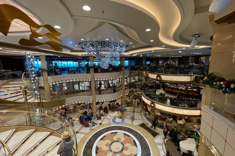 We climbed up on a skybridge, relevantly named Monique. Monique sassily guided us onto the 5th level, in which we were greeted by carollers, another MedallionClass verification station, and a grandiose hollow atrium with music, life, and places to nosh and relax.