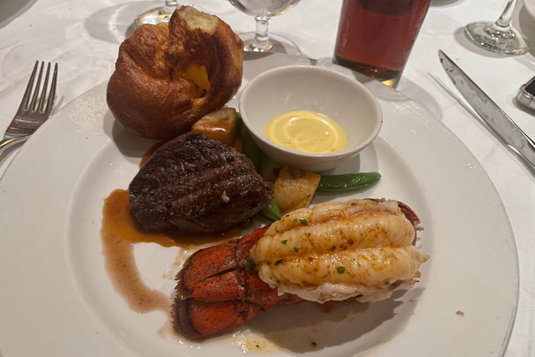 The food throughout the ship and the way it operated was a tapa to life of the agées; the old; retirement. Service was not especially quick, but was thoughtful, kind, and followed Western table manners, in order precedence, table-turning, and presentation of sustenance. An item I despised with the standard dessert items was the constant presence of a film of gelatin, and all cake frostings were gelatin puddings. I’m someone who isn’t picky, but textures like gelatin and overcooked squashes are things I cannot stand. I’ll ingest it if given, but I would avoid them if given the opportunity. Anyways, the presentation of all meals was especially inviting, with rings of sauce, reminiscent of Saturn in 87% of the dishes enjoyed on the cruise’s dining rooms. These rings are a staple for most chef’s cooking; it makes anything they cook, whether a wee cat turd, gold-encrusted tooth, or chicken à la king into something classy, and expensive. Something that deserves a half-hundred pricetag. Luckily, onboard the Discovery Princess, food from all dining rooms, the soft-serve ice cream, burgers, hot dogs, the world market buffet, and pizza, are gratis. Every other eatery has an extra price tag, as they are premium restaurants. Princess Plus and above are eligible for full wifi (1 device), and free drinks (Anything that isn’t unsweetened Iced Tea, lemonade, or water, as those are already previously included with all patrons onboard the ship). The food was good, especially at the buffet. Eggs were too perfectly circular, leading me to think that the chickens were modified to lay spherical eggs, and the food was well-seasoned. One negative detail was that the oil was always slightly rancid for the hash browns, but the texture was still spot-on. The dining room was either excellent or mediocre, much like a retirement home. The meal on Christmas Eve, our waiter was wonderful, entertaining, and always there to please. The Filet Mignon and Lobster tail were excellent, as I cannot resist free surf-and-turf. Yorkshire Pudding was soft, although the duck was a wee bit dry. The desserts were all excellent, as always, although I wasn’t too fond of the Sugar-Free Bread Pudding that represented my country, Canada. And let’s relay back to ordering food; you may order as many plates as your leg-laying stomach desires. Why? To accommodate Mr. Big Stuff and his monstrous belly that cantalevers over his hips, is a challenge, yet Princess accommodated all with ease. How? Feeding them till they were at ease.
